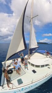 停泊しているヨットの上から泳がずビーチにも行かず、風を感じながら鳥の鳴き声を聞きながらゆっくりと景観を眺めているだけというのは何とも上級者の遊び方ですね!