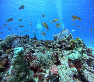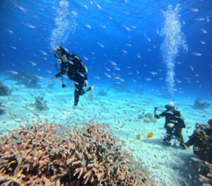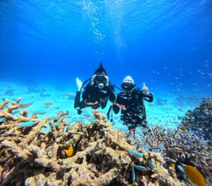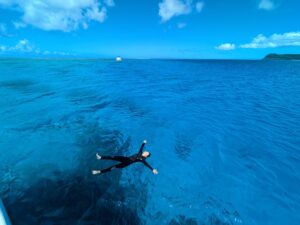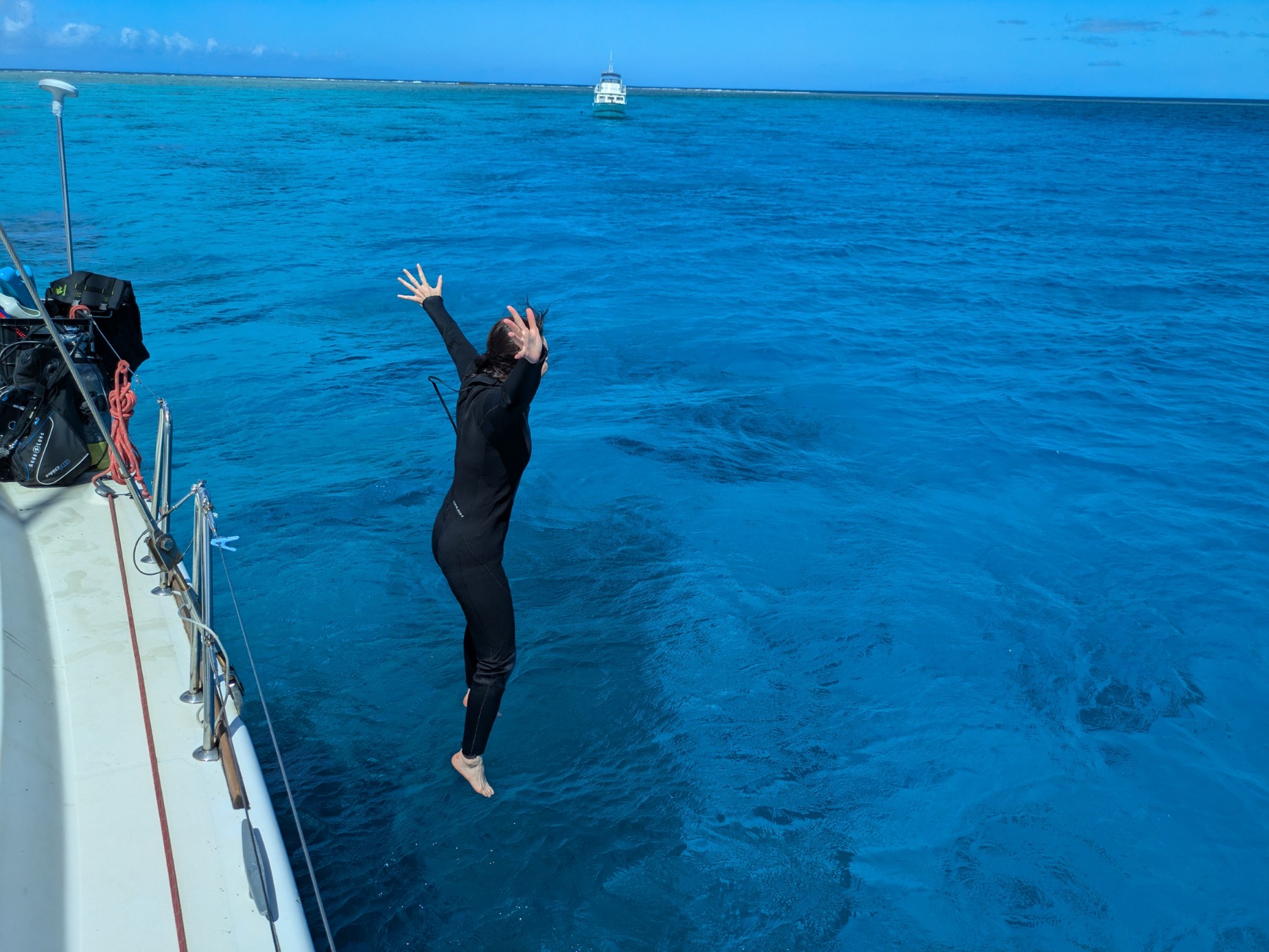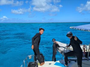 最高のダイビングを終えた直後に、奥様が飛び込みたいと!