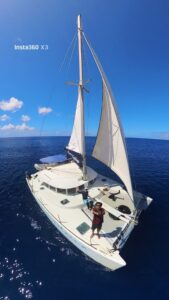 といいますのも、3か月ほど前スタッフたつきがピナイサーラの滝ツアーの案内時に、ガイドを付けずにカヌー乗り場の様子を見に来ていたご夫婦に、それ以上は許可なく進んではいけないと注意したそうなんです。それがキッカケで少し世間話をして意気投合したのか、今日のヨットチャータークルーズのご予約をしてくれたんです(笑)