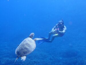 カメが見たいとのことだったのですがそれなりに海が時化ていたのでどうしようかと迷いましたが、頑張って崎山まで行くことができました~!!