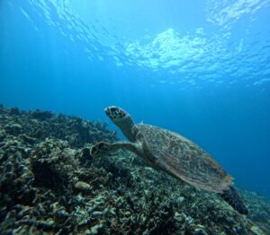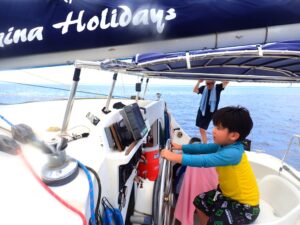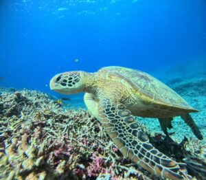 子供船長がカメを見れるポイントに連れていってくれたおかげだね♪
