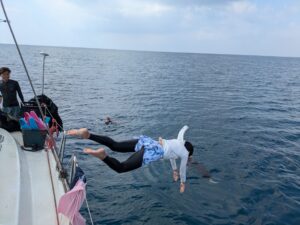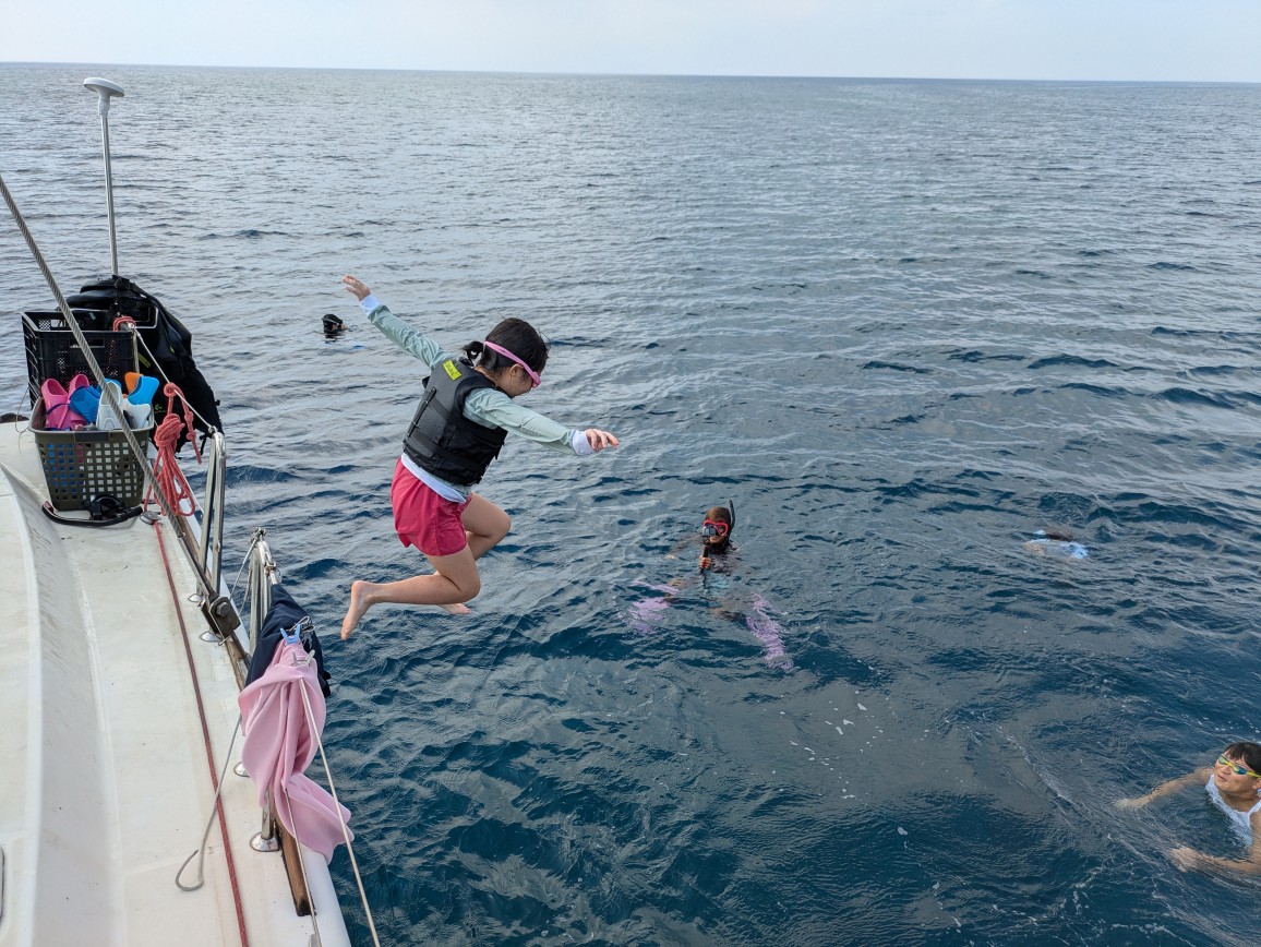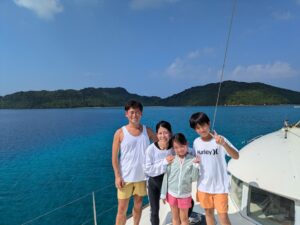 今日は2組のファミリーとヨットシュノーケル&飛び込み大会ツアーへGO!