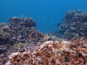 いや~困った困った。実際に水中で(普段ならサンゴや魚が見れるポイント)写真を撮ってみましたが、こんなかんじ(笑)