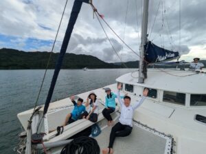 実はこのリピーターさんは昨年の同じ時期にお越し頂いたのですが、我が家の緊急的な出産の為に滞在中の3日間全てヨットツアーを中止してしまったリピーターさんだったのです。。。その節は大変ご迷惑をお掛けしました!!