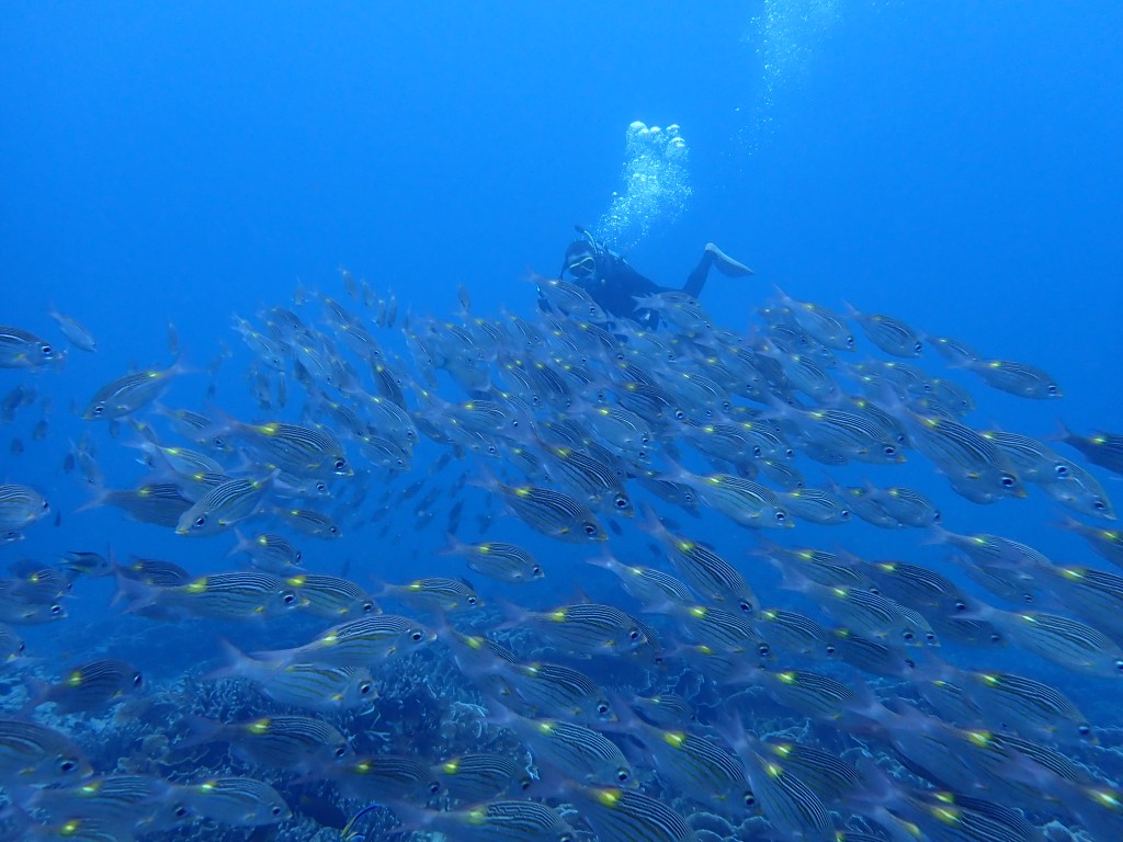 舟浮湾内は透明度ずっと悪いですが、崎山まで行ければ透明度も良くて最高♪