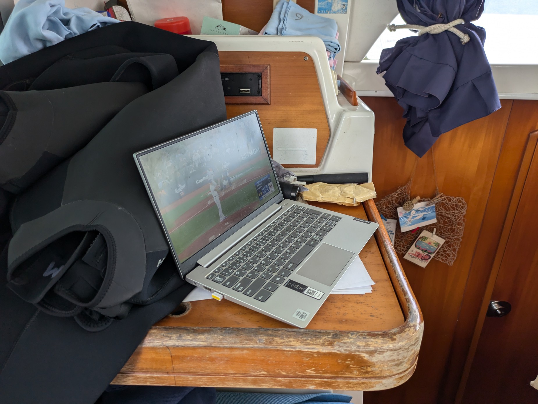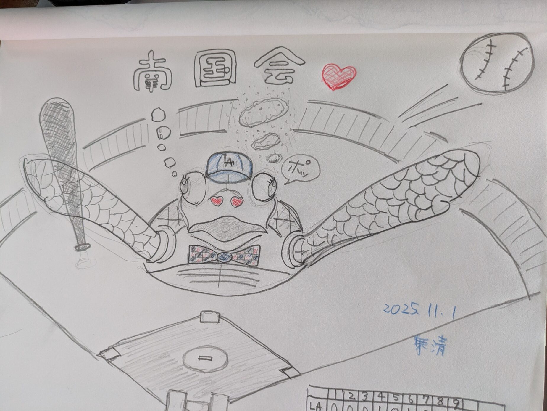 送迎車内からドジャースVSブルージェイズを観戦して大盛り上がりしていたので、「ポイント重視か電波重視かどちらですかね」と聞いたところ「試合が終わるまでは電波重視で」と(笑)