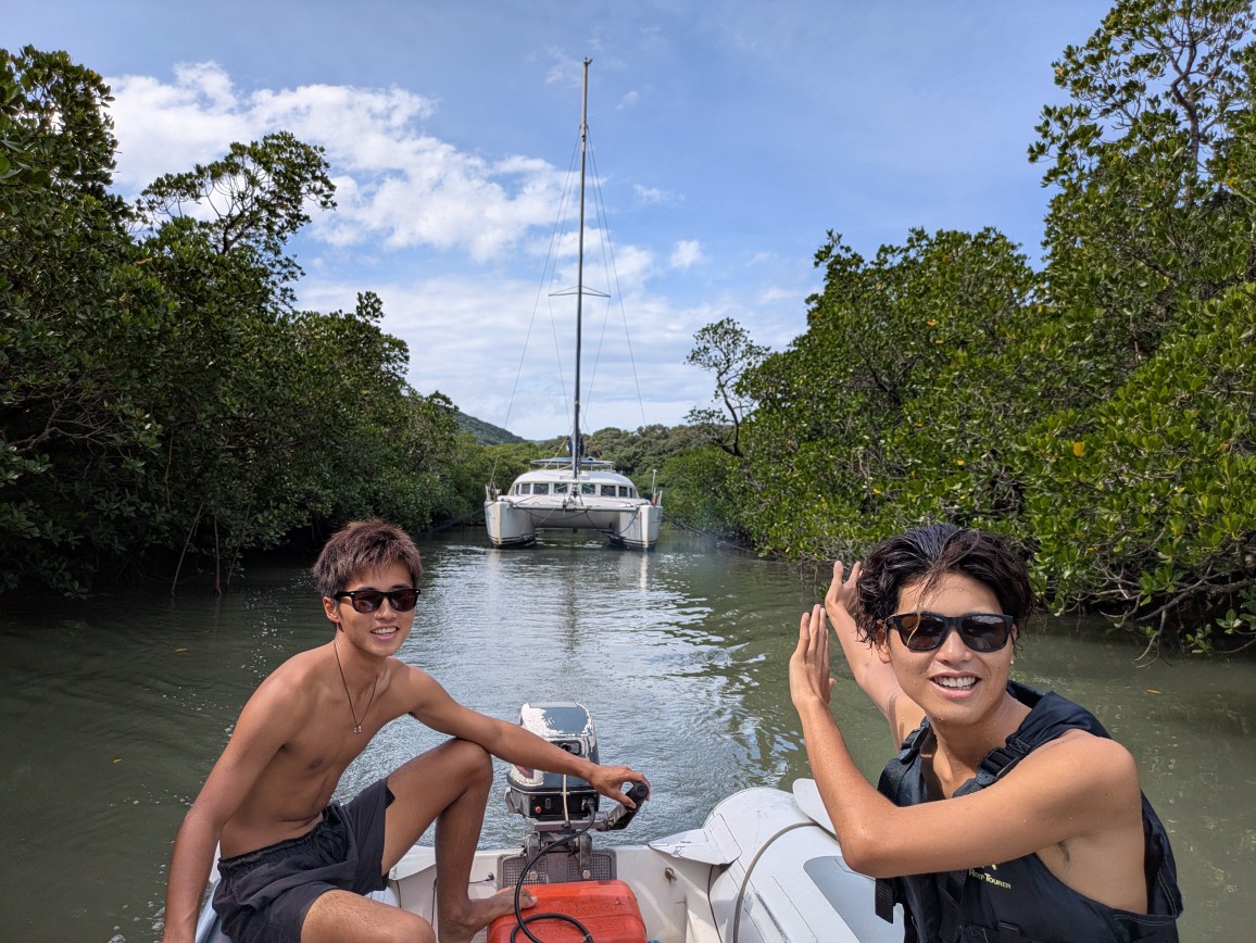 午前中まで大雨でしたが、ちょうど昼間の満潮時は晴れてくれたのでニーナ号をマングローブへ!