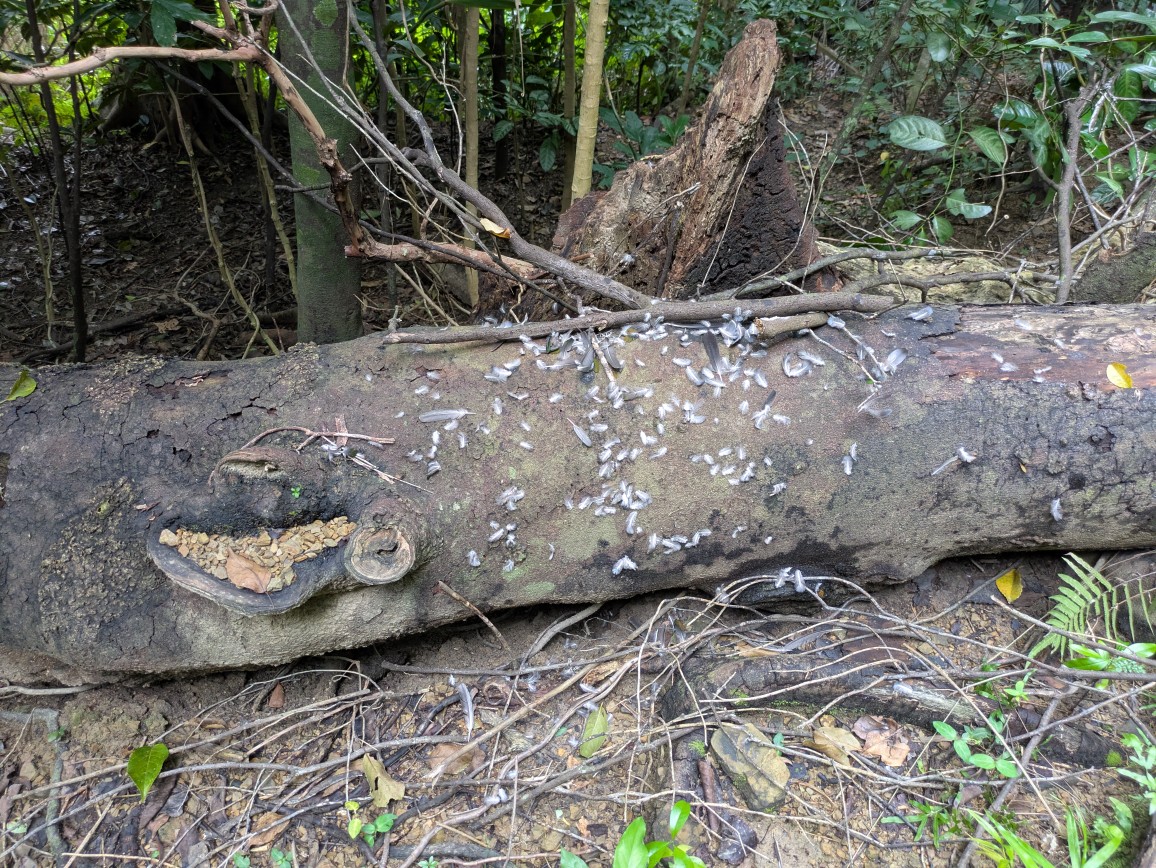 道中、おそらくやまねこに食べられたであろう鳥の羽が散らばってました⇩