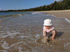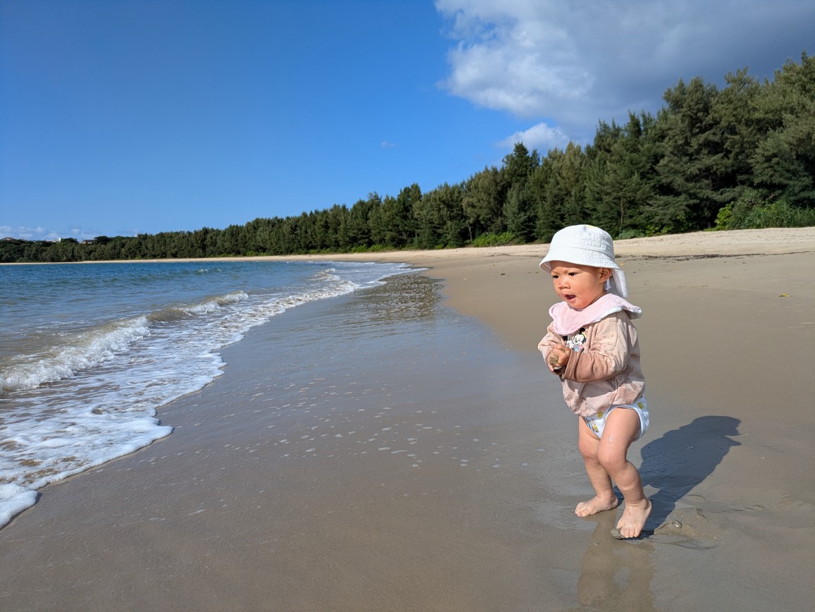 島に戻ってきてからずっと天気悪かったですが、晴れてくれれば娘も嬉しそうに海遊び♪