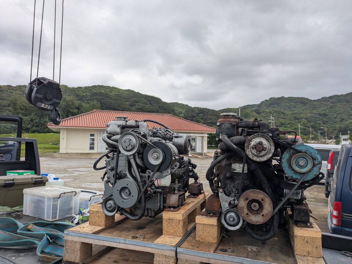 新しいエンジンが届いてから天気が不安定なこともあり中々作業が捗らなかったのですが、ようやく載せ替え作業完了しました~♪