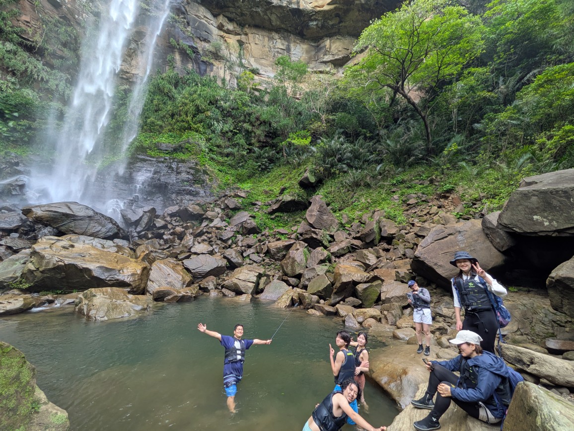 真冬でもウェットスーツを着たことがなかったあつとは、滝壺でも全く寒くない様子。