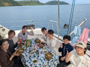 そんなラッキーデイにリピーターさんファミリーとヨットシュノーケルツアーへ!