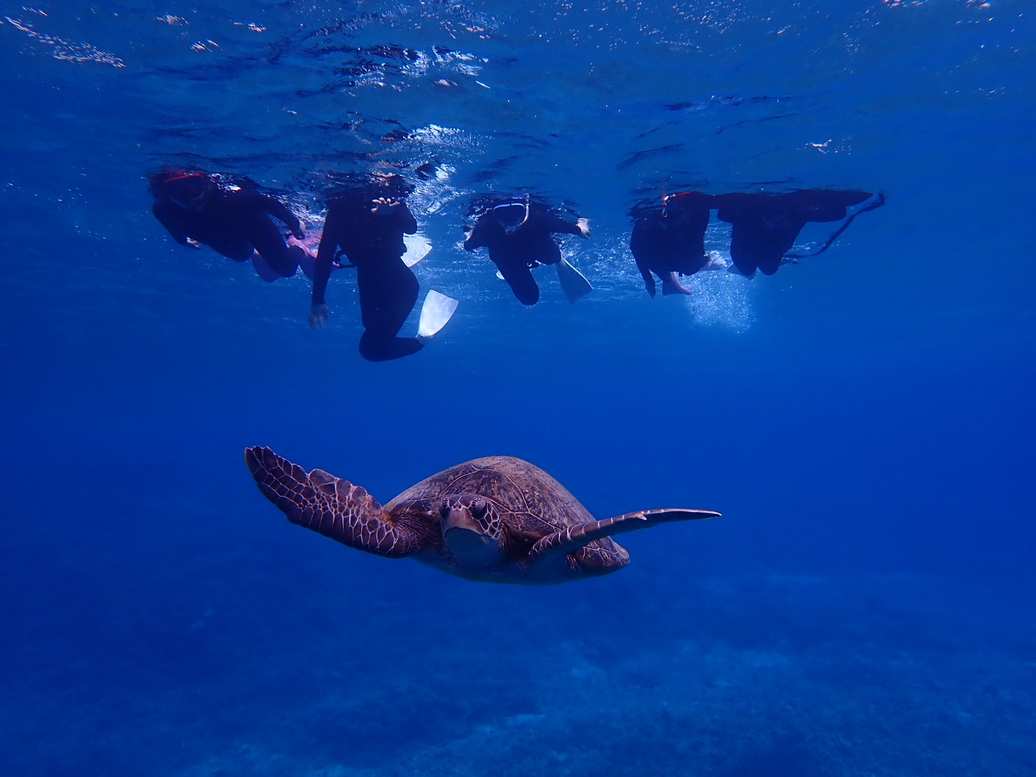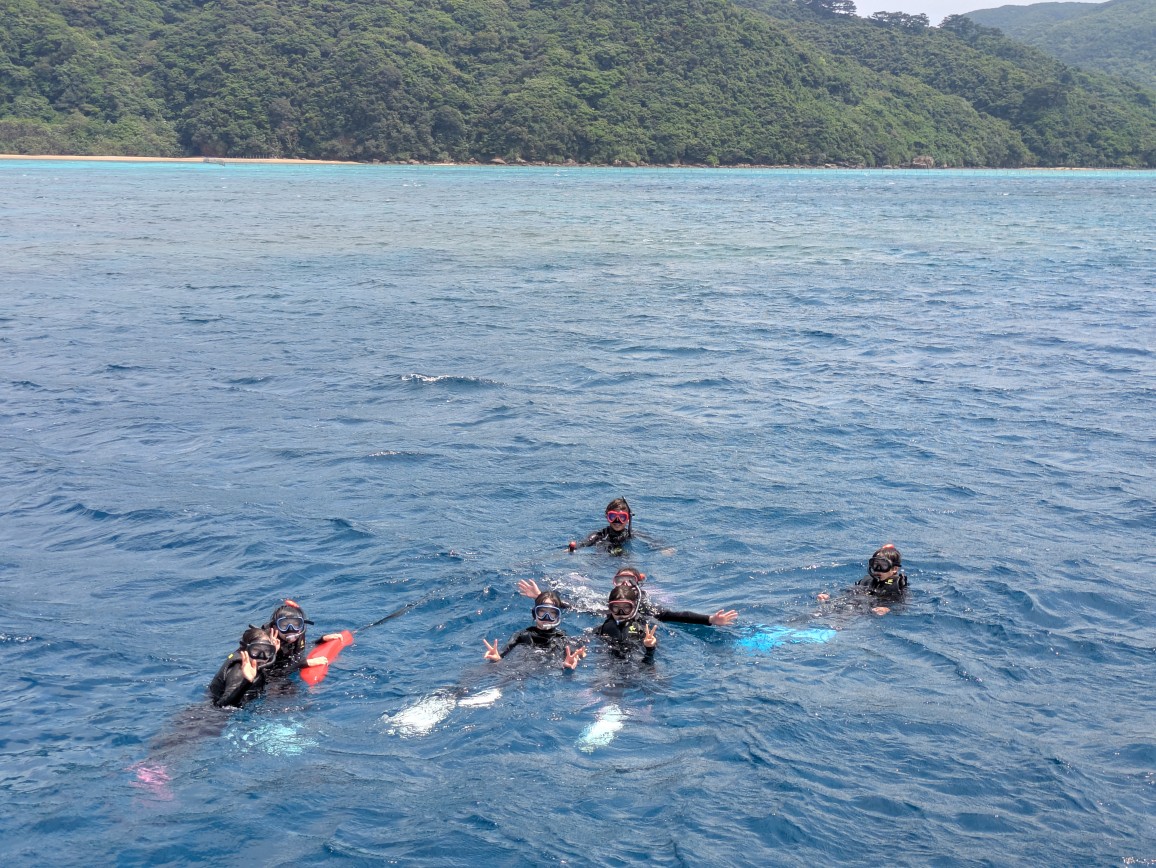 子供たちは全身タイツみたいなウェットスーツを着るのを恥ずかしがって(笑)、ラッシュガードのみでシュノーケル。