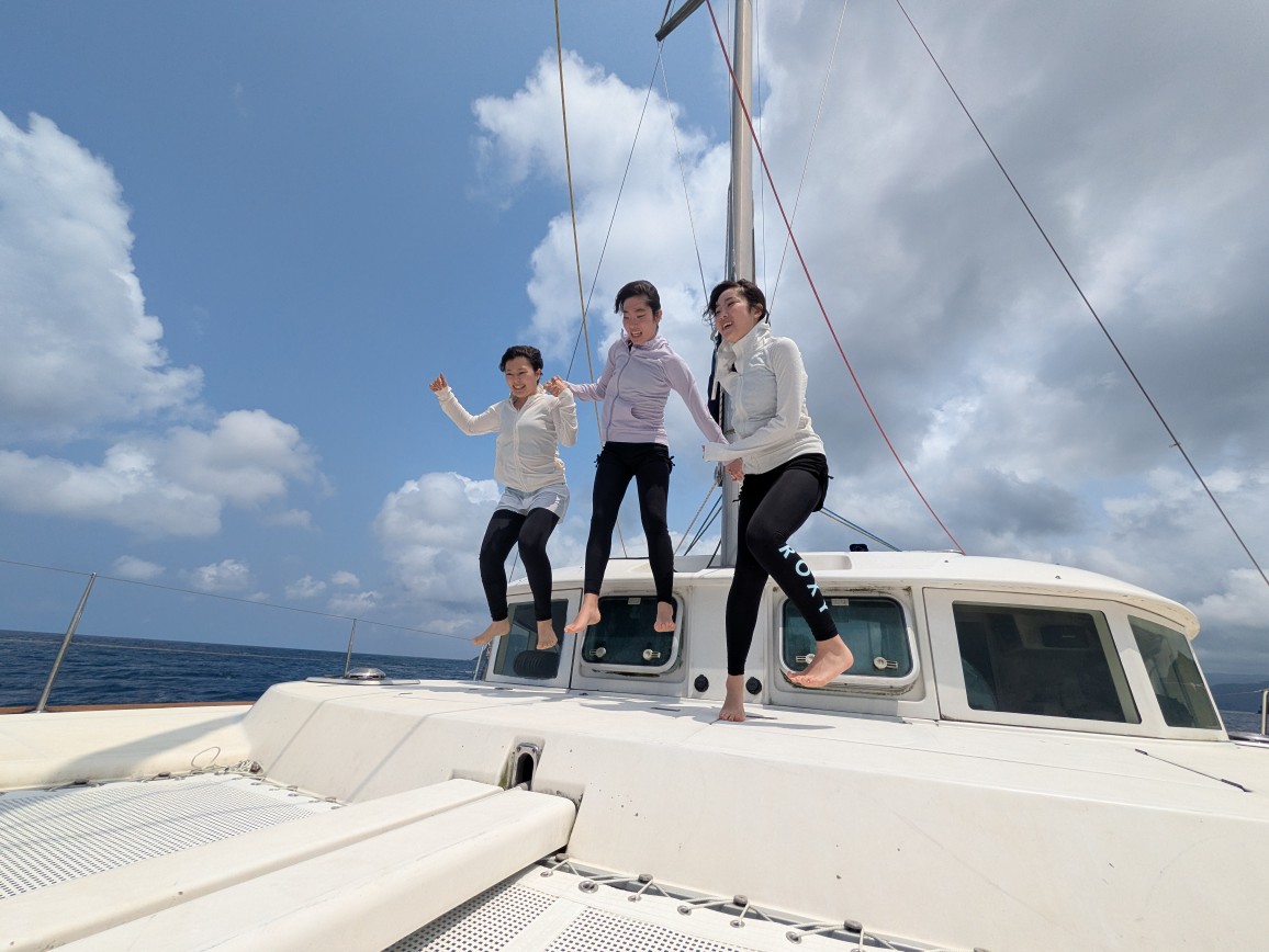 そんなラッキーデイにリピーターさんファミリーとヨットシュノーケルツアーへ!