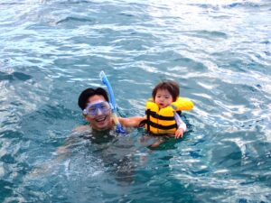 午前中はダイビングチームと子守チームに分かれて遊んで、午後からはみんなでビーチ&シュノーケルへ♪