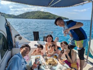 今日は2組のファミリーとヨットシュノーケル&飛び込み大会ツアーへGO!