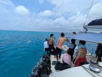 1本目はハナゴイの根、2本目はお昼ご飯を食べるときによく使うブイにとめて、カメに会いに行ってきました!